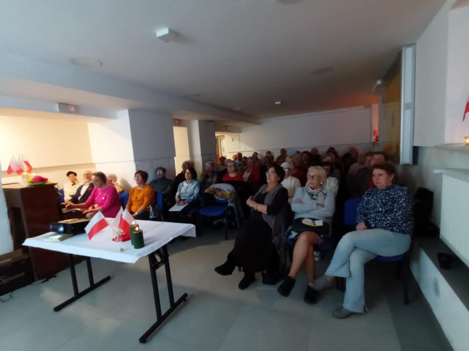 12 listopada 25 r. odbyło się zebranie słuchaczy NUTW. Zebrani wysłuchali wykładu ” Droga Polaków do niepodległości”, który zaprezentował Pan Tadeusz Danielczyk. Po wykładzie zebrani śpiewali pieśni patriotyczne.