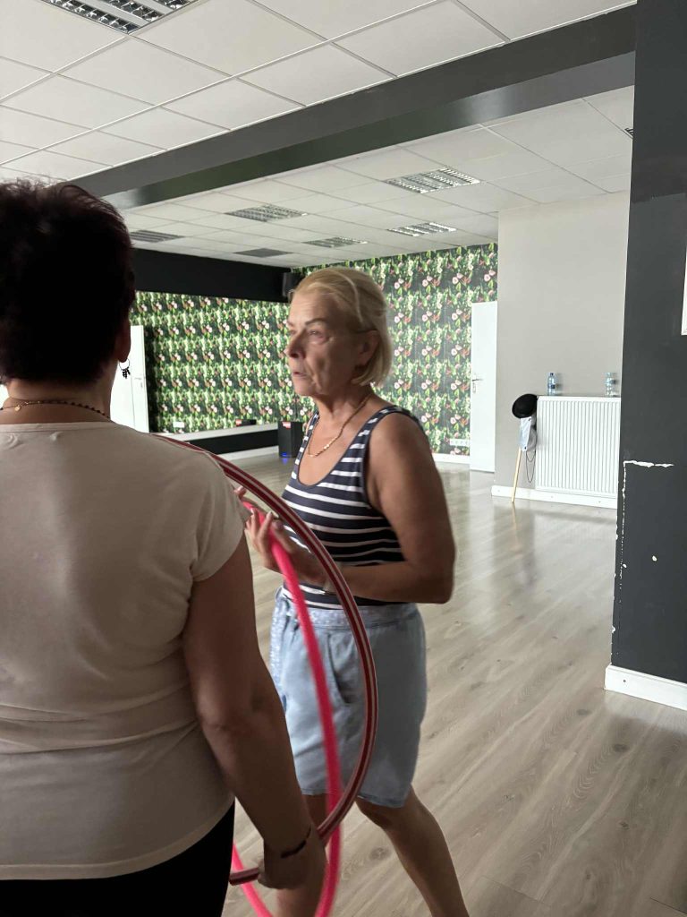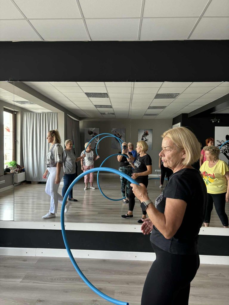Uniwersytet Trzeciego Wieku z Nidzicy ,,Młodzi Duchem” od lat korzysta z zajęć aqua aerobiku prowadzonych przez p. Edytę Bobińską na pływalni w Chorzelach. W 2023 r. projekt „W zdrowym ciele zdrowy duch” został dofinansowany w kwocie 3 tys. zł przez Gminę Nidzica. Realizacja projektu to 7 wyjazdów 20 osobowej grupy na pływalnię. Walory zajęć dostarczają seniorom wiele korzyści zdrowotnych: łagodząc bóle kręgosłupa oraz poprawiając wydolność fizyczną . Nie brakuje też dobrej dawki humoru oraz pozytywnej energii tryskającej od ćwiczących.