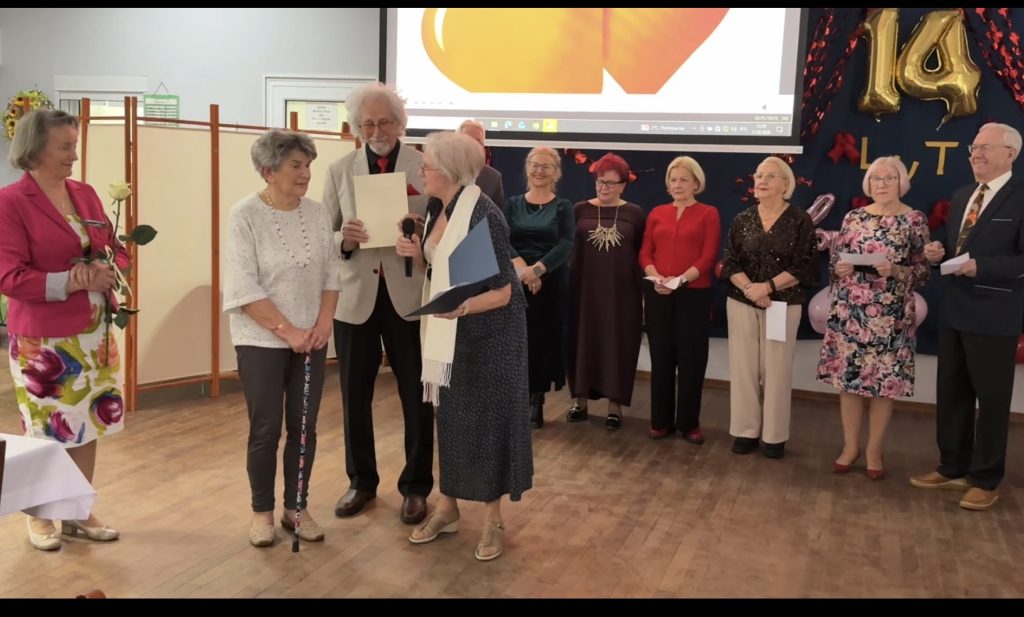Dziś 12 lutego 26 r. mieliśmy piękne, pełne ciepła spotkanie walentynkowe. Grupa poezji zaprezentowała wzruszający i zabawny montaż słowno-muzyczny o życiu seniorów. Po występie grupy poezji i świętowaliśmy 89. urodziny naszej koleżanki Basi – która oprócz certyfikatu Super-seniorki otrzymała także piękne, życzenia podpisane przez wszystkich uczestników. To nie koniec – świętowaliśmy również „okrągłą …..siątkę” kol. Eli.Na koniec był obiad, ciasto, kawa, herbatka i prawie dwie godziny wspólnych tańców. Cudowny dzień pełen radości, przyjaźni i serca! 💕